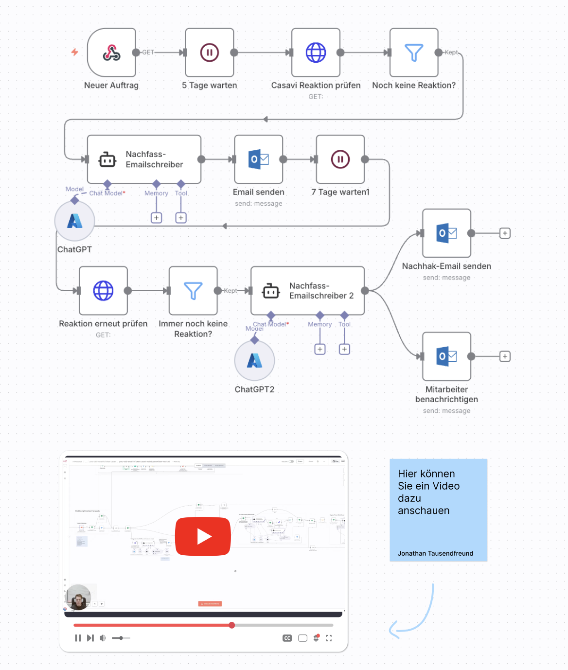 - Die Nachhak-Email wird persönlich per KI formuliert und im Namen des Mitarbeiters versendet